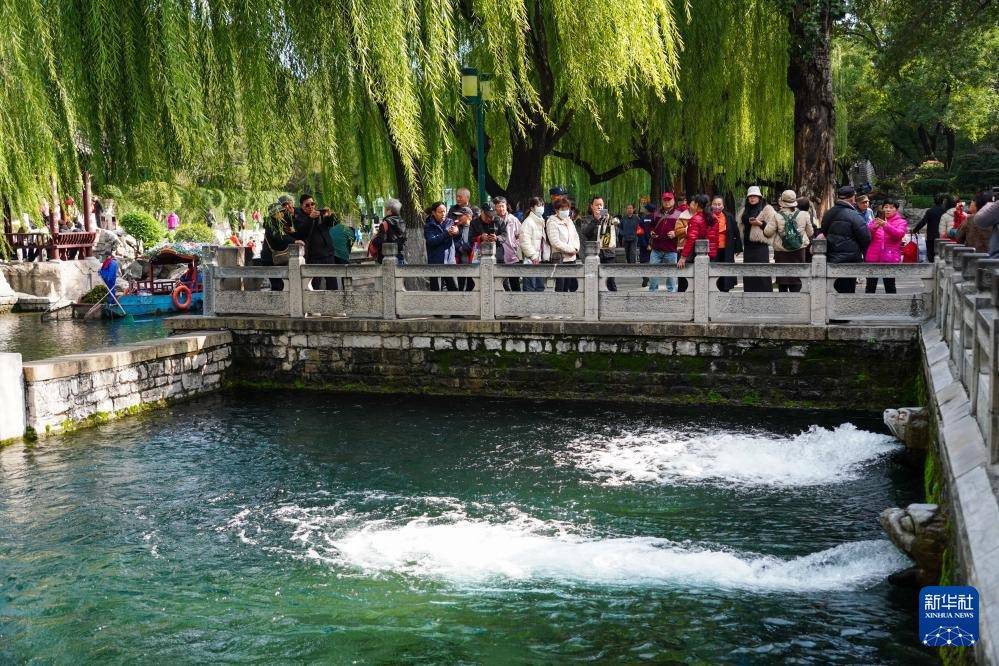 10月22日,人们在山东济南白石泉边游玩。